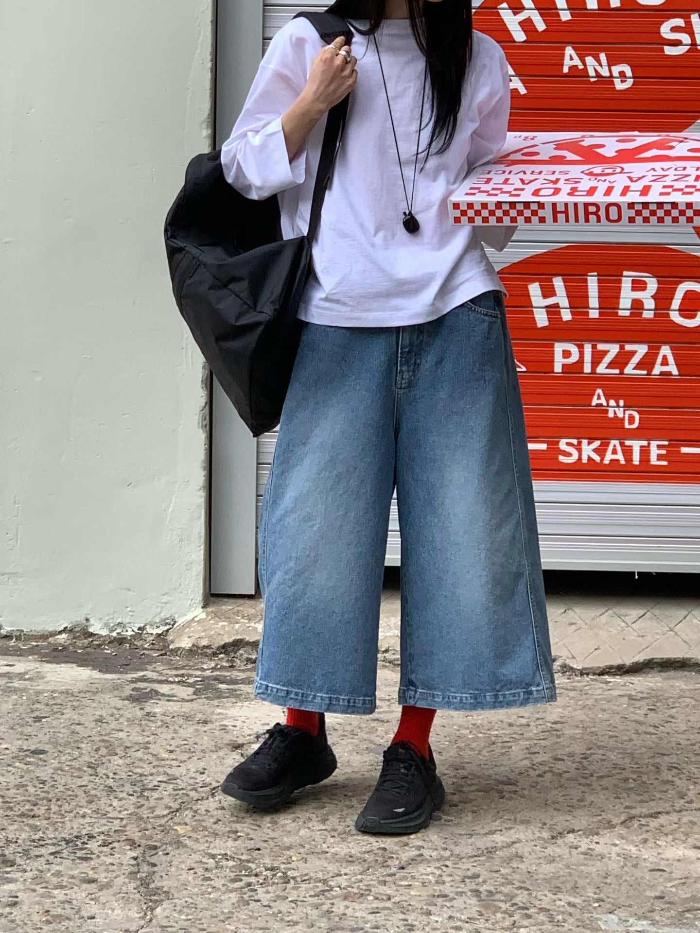 9分牛仔闊褲